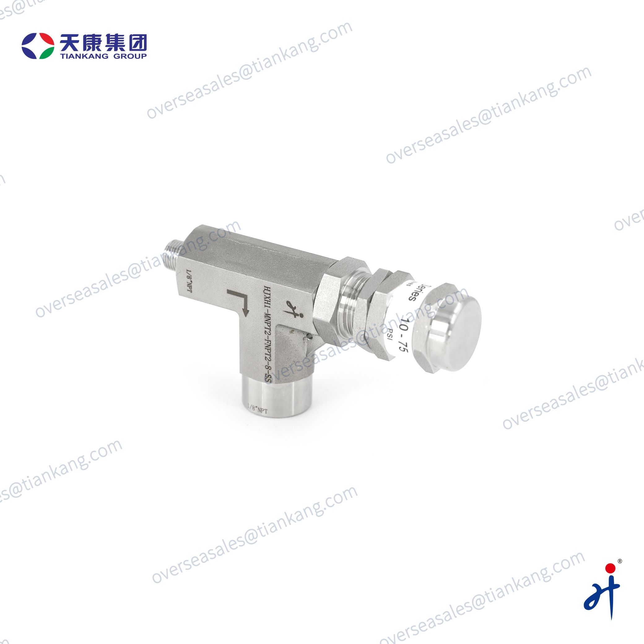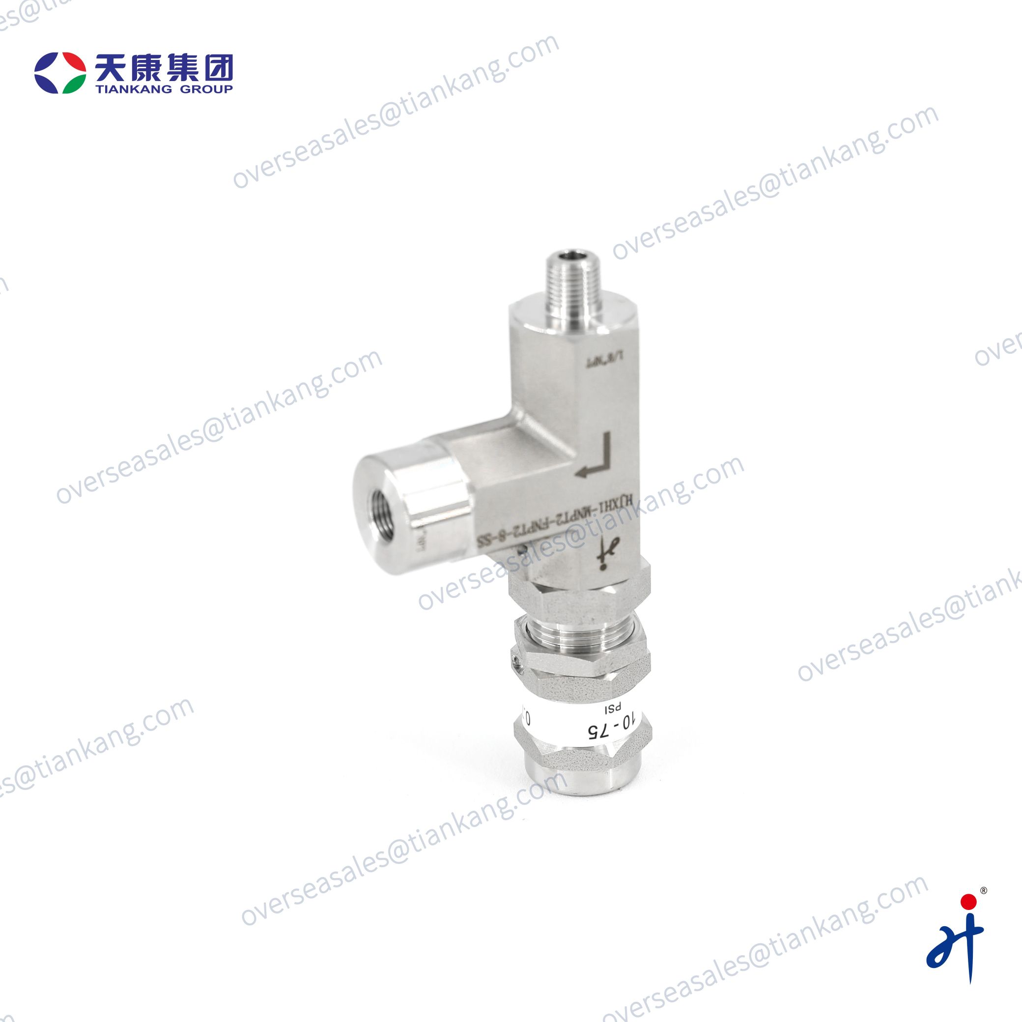 Tiankang Hongji Stainless Steel Relief Valve features an SS316 body and FKM seals, providing excellent corrosion and high-pressure resistance, with a maximum working pressure of 6000 psig (414 bar) for demanding service conditions. It has an adjustable set pressure from 10 to 75 psig, delivering precise and stable pressure relief for low-flow applications. Its compact design and easy installation make it an ideal safety component for small-bore systems.