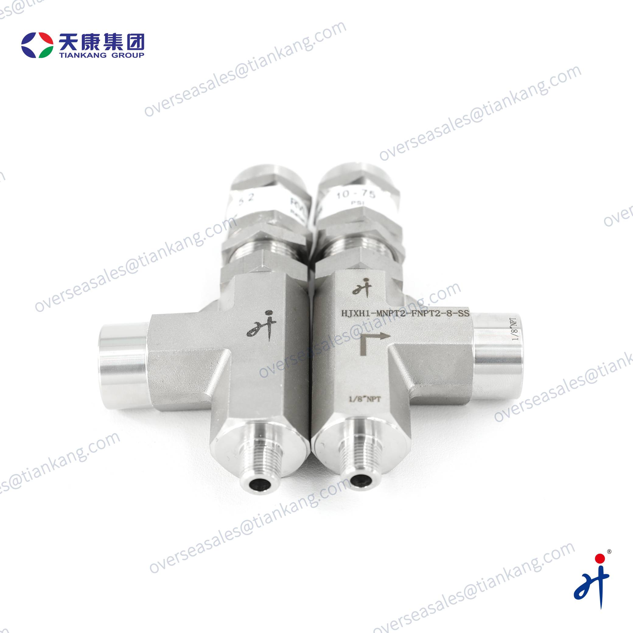 Tiankang Hongji Stainless Steel Relief Valve's primary function is to open automatically and relieve pressure when the system pressure exceeds the set value, preventing overpressure, line rupture, or equipment damage; when the pressure returns to a safe range, it closes automatically to maintain a safe and stable operating pressure. It is widely used in instrumentation lines, gas and liquid sampling systems, chemical and petrochemical plants, laboratories, and analytical equipment, and is particularly suitable for medium- to high-pressure, low-flow systems that require accurate pressure control and safety protection.